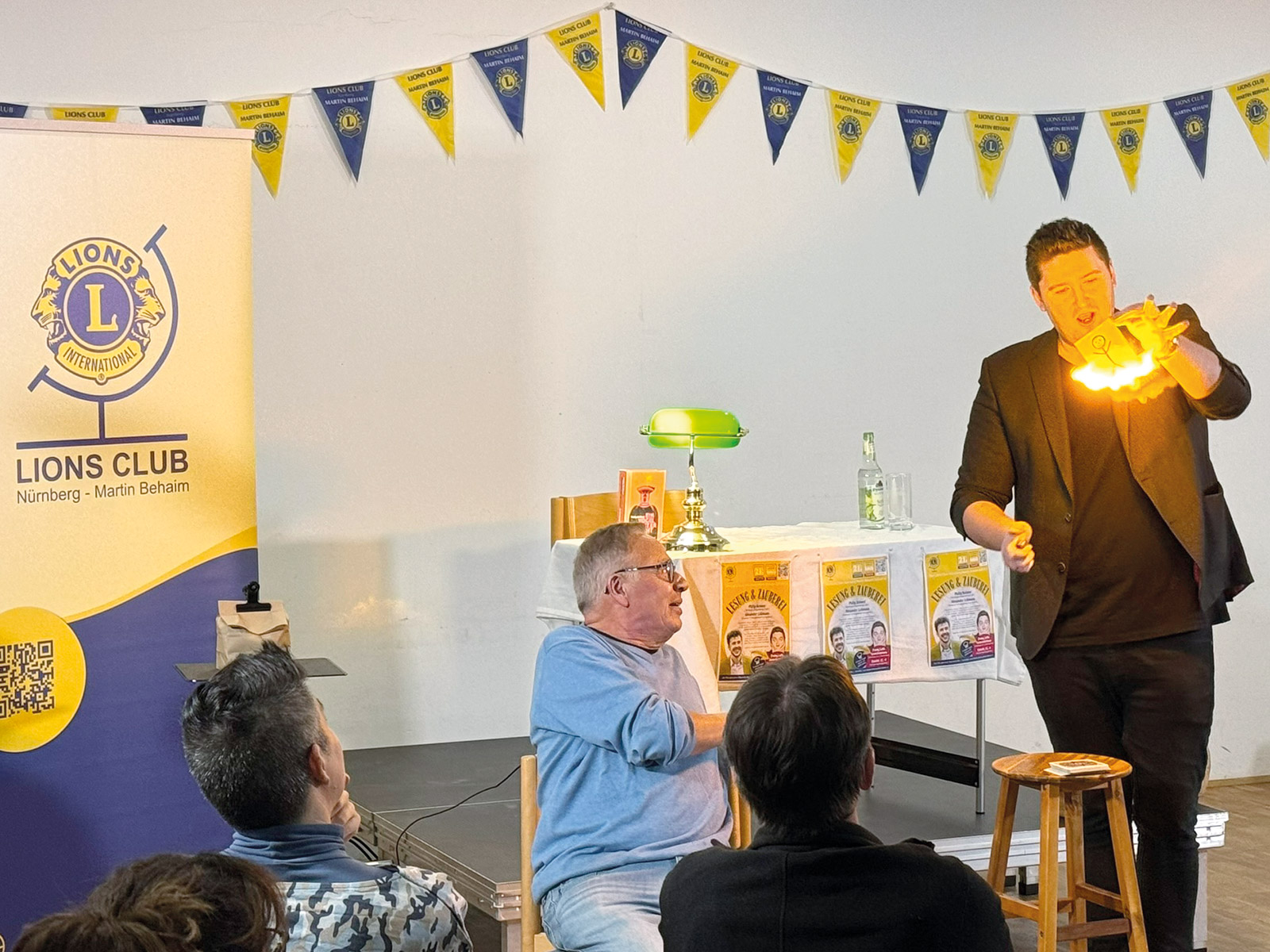 Geht man zu einer Veranstaltung des Lions Clubs Nürnberg Martin Behaim mit dem Titel „Lesung & Zauberei“, fordert das die volle Aufmerksamkeit. Ganz besonders dann, wenn der junge Erlanger Autor Philip Krömer aus seinem Buch „Ein Vogel ist er nicht“ vorliest. Denn seine Geschichten, die sich häufig mit historischen Personen befassen, und damit, was in deren Leben ganz anders hätte sein können, erfordern die volle Aufmerksamkeit des Publikums. Egal ob es um die Stirnfalten von Napoleon, um das Ohr von Vincent van Gogh oder gar um Kaiserin Sisi geht, die in die Rolle von Ludwig II schlüpft.